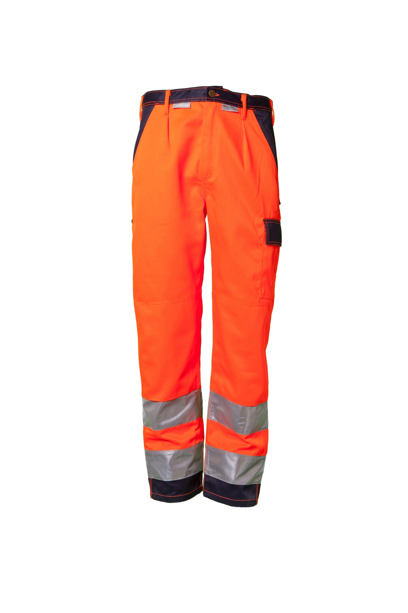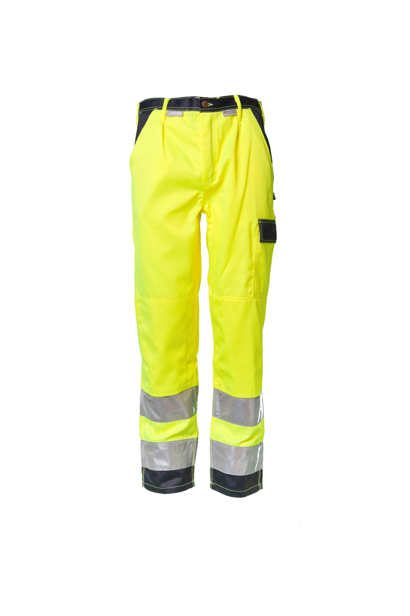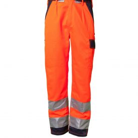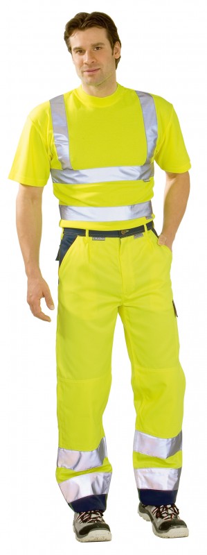 ” High Visible” Divkrāsu bikses. “Komforts tas labākais”. Dubults nošuvums ceļgalu rajonā, cilpa āmuram, mobīla telefona kabata, augšstilba kabata ar klapīti, instrumentu kabata uz labā augšstilba, jostas cilpas jostu, 2 sānu kabatas, 2 pastiprinātas muguras kabatas ar atloku. Kabatu rajonā un bikšu staru galos tumšās krāsas ielaidumi 2 gab. 5 cm atstarojošās lentasuz bikšu starām.
